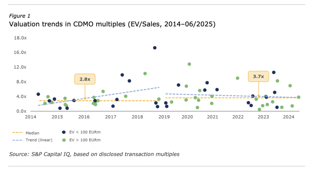 Despite a moderate post-COVID correction in valuation multiples, M&A appetite in the CDMO sector remains high: