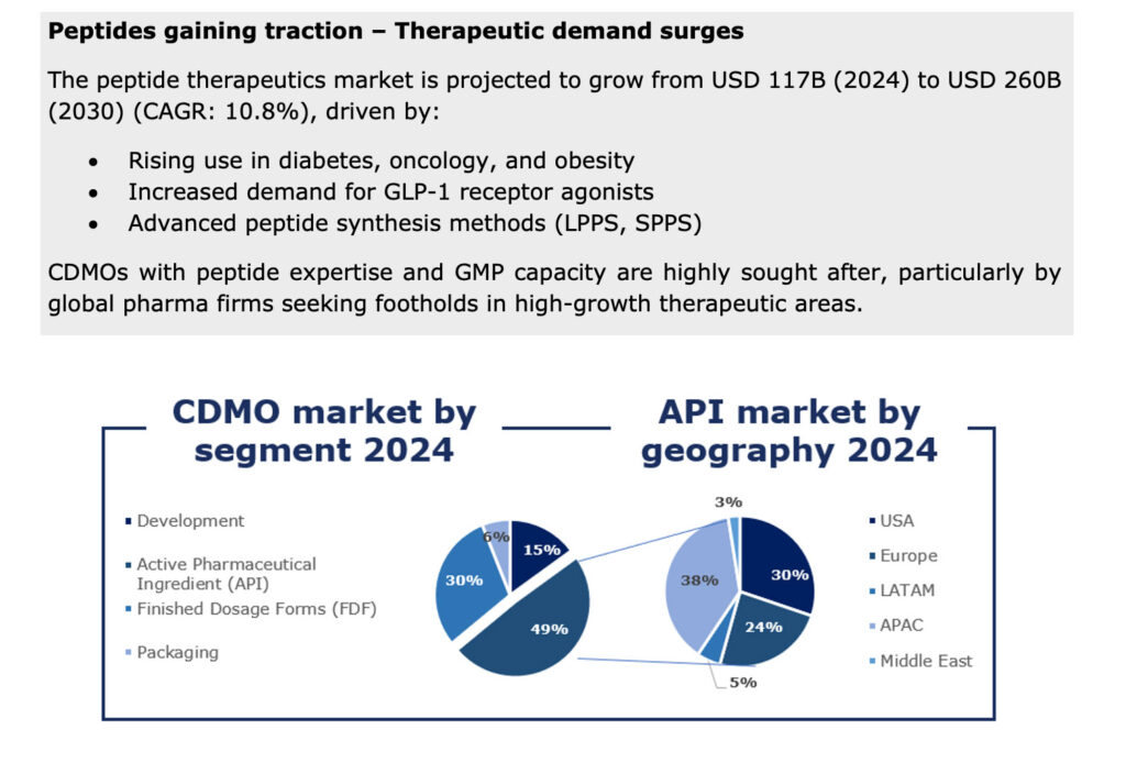 The CDMO landscape is evolving rapidly, with certain segments — such as biologics, cell and gene therapies and advanced aseptic manufacturing — experiencing strong growth, while more traditional small-molecule and generics-focused areas face increasing margin pressure and consolidation. In this environment, a clear strategic positioning and forward-looking equity story are indispensable to present an attractive M&A opportunity and to capture investor interest.